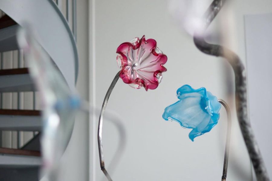 L’artiste Anna Tomaszewski présente une démarche non sans rappeler celle de l’archéologue. Elle cherche des traces du temps passé, à une échelle plus ou moins lointaine, et se laisse captiver aussi bien par des minéraux que par des déchets industriels. Son travail questionne notre rapport à la nature et au temps.Son oeuvre Nueva Sangre, ‘sang neuf‘ en français, est une sculpture composée de fer et de verre. En récupérant des objets ou matériaux abandonnés et en les assemblant, Anna Tomaszewski leur confère une nouvelle fonction, celle d‘oeuvre d’art. Son geste démontre tout d’abord la nécessité de se réapproprier et de « recycler » des éléments voués à être jetés, mais également la nécessité de regarder autrement. Nueva Sangre fait état d’un renouveau. La sculpture représente une forme végétale, une longue tige d’où un bourgeon est en train d’éclore. Le débris industriel donne naissance à une fleur.